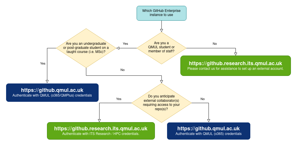 If you are an external collaborator, or a QMUL researcher with external collaborators that require access to GitHub Enterprise, please use the legacy version of GitHub Enterprise (https://github.research.its.qmul.ac.uk).